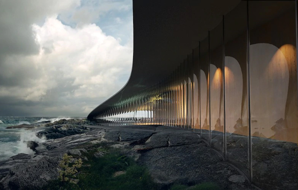 This project aims to increasingly know these animals and, at the same time, to protect sea life. Having a stone covered roof, the huge tail blends with the rocky landscape whereas its curved shape seems to move along the cost where it will be built. Inside, exhibition areas, offices, a coffee shop and a shop will be connected to the surroundings by means of huge glass walls. The project, which will come to an end by 2022, is a chance to foster tourism on the Andøya island that today counts 50,000 visitors every year.