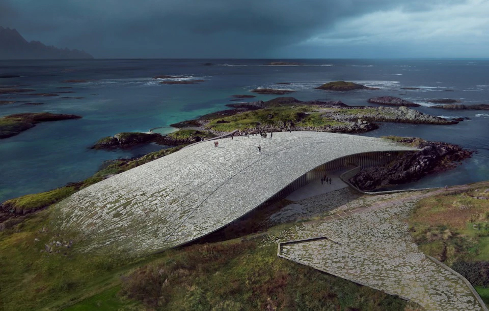 The Danish studio of architects Dorte Mandrup A/S will build The Whale, a building intended to become an observatory of whales in the Arctic; its shape will look like a huge tail of a whale. This cultural building will be located in the northern part of Norway, 300 km north of the Arctic Circle, one of the best locations to observe these mammals.