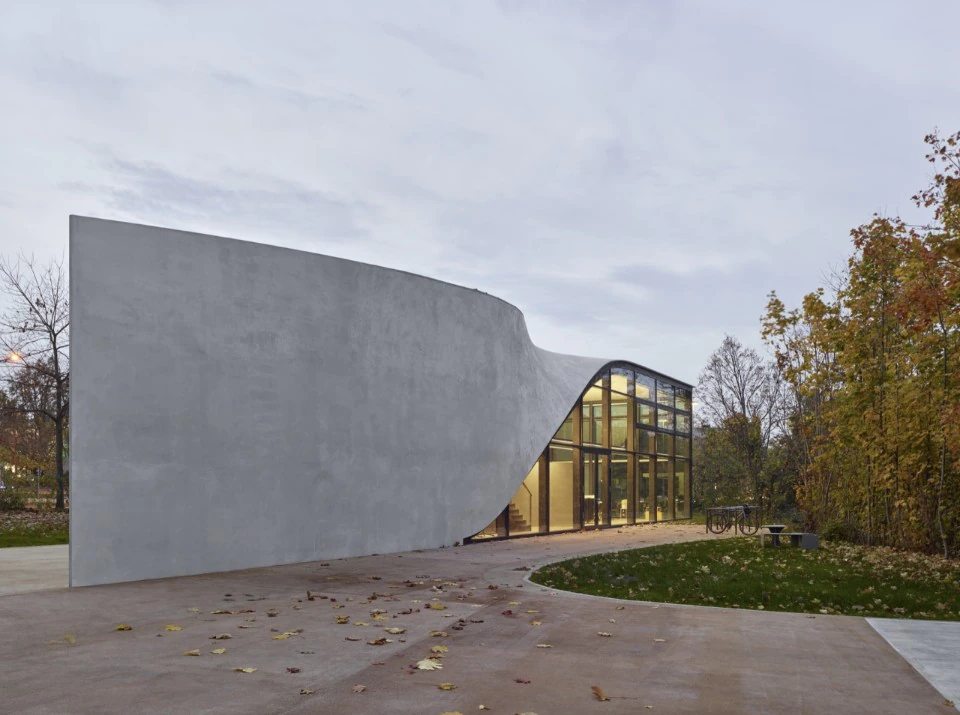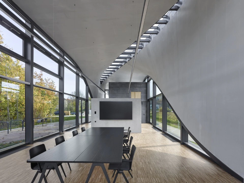 “The CUBE” è il risultato di un processo di collaborazione tra il professor Manfred Curbach, il suo Institute for Solid Construction, presso la TU Dresden, ed HENN. La sua forma richiama la natura fluida, quasi tessile, delle fibre di carbonio, fondendo pareti e soffitti in una forma continua.