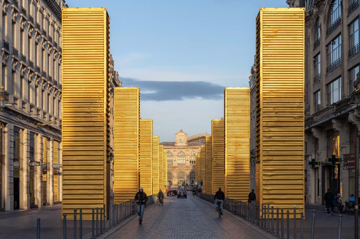 LILLE – FRANCE GOLDEN MONOLITHS, CONTAINERS TRANSFORMED INTO GOLDEN TOWERS