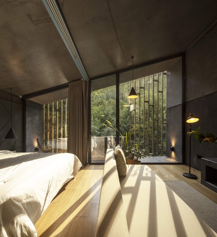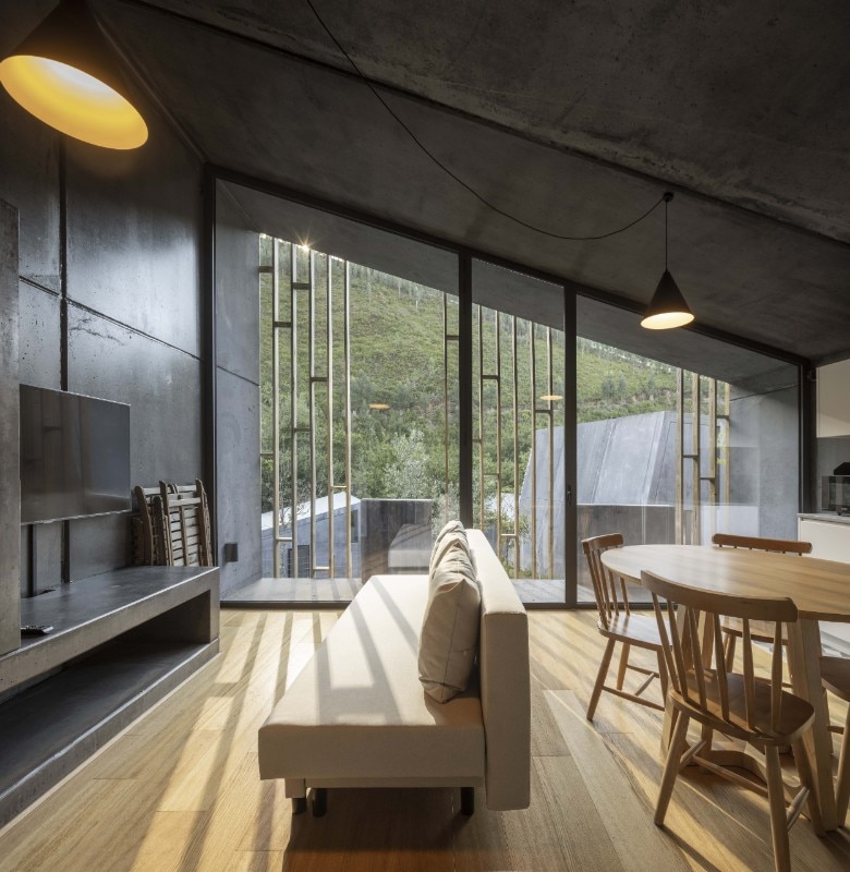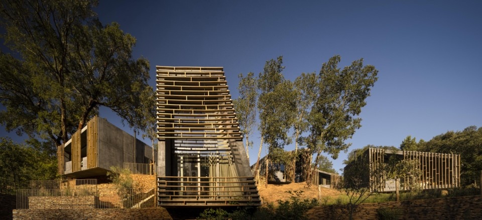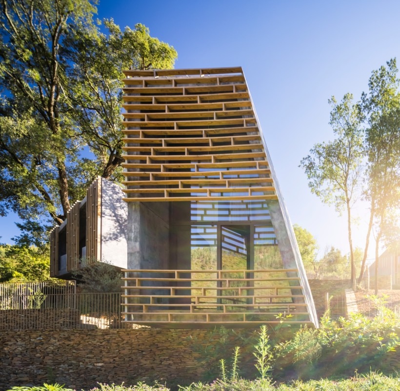 Paradinha is a tourist facility set in the Portuguese mountain landscape of Aldeia da Paradinha, Alvarenga. Summary, the studio in charge of the project, chose – also driven by the natural conformation of the place – to divide the holiday structure into eleven small cabins, placing them on the plot and thus obtaining a village. A traditional building would in fact have been, in the words of the architects, “difficult and extremely expensive”.