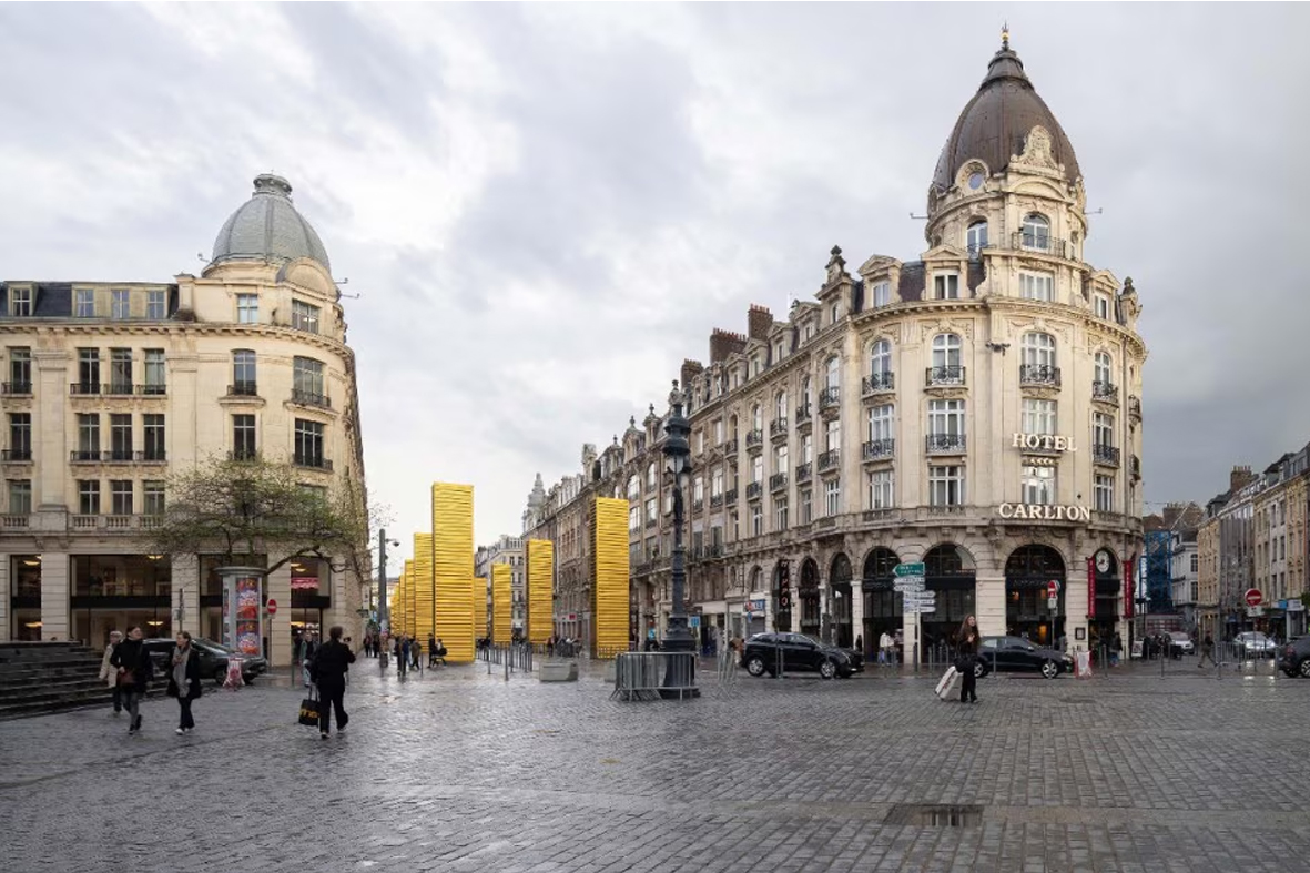 LILLE – FRANCE GOLDEN MONOLITHS, CONTAINERS TRANSFORMED INTO GOLDEN TOWERS