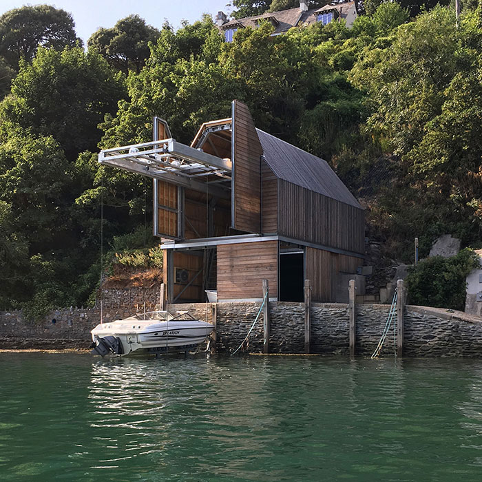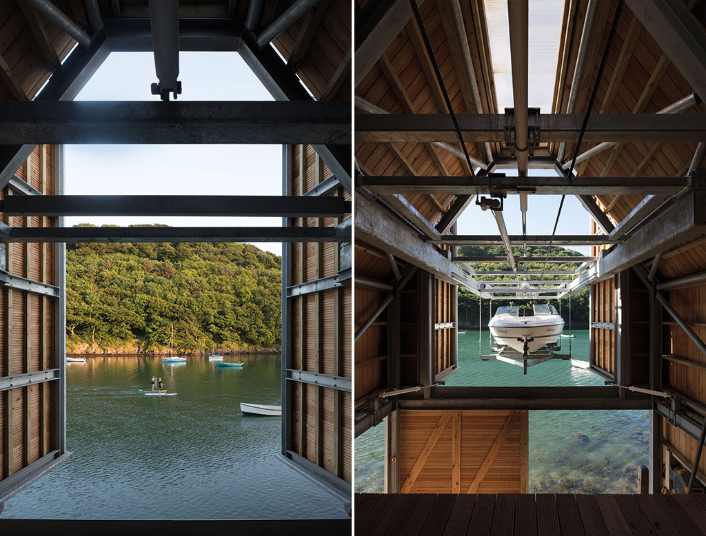 Lo studio londinese Wimshurst Pelleriti firma una rimessa per barche d’acciaio e legno sul fiume Yealm, vicino a Plymouth. Un piccolo saggio d’ingegneria navale che sfrutta al meglio il poco spazio offerto dalla sponda stretta e scoscesa