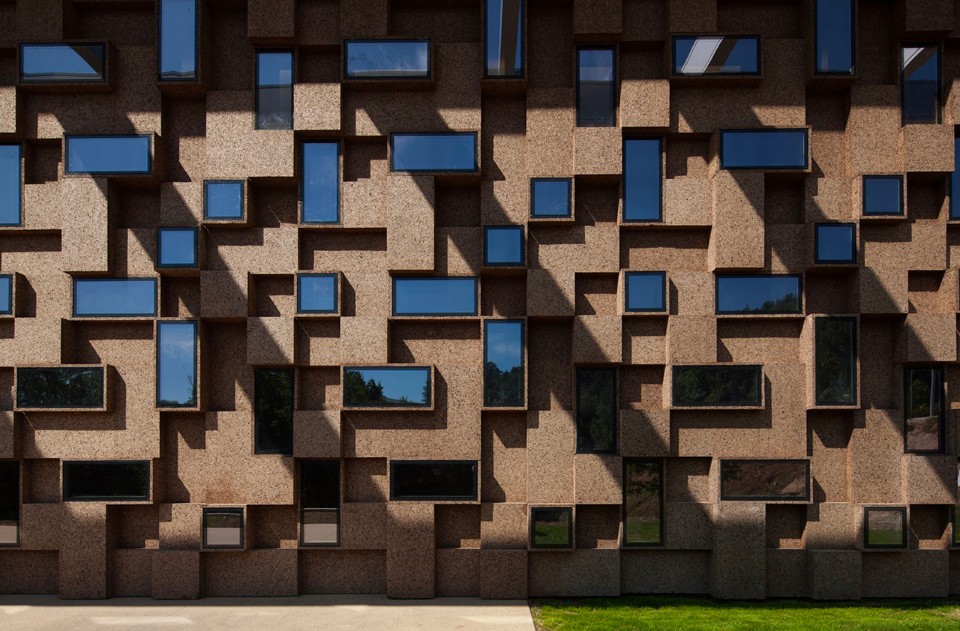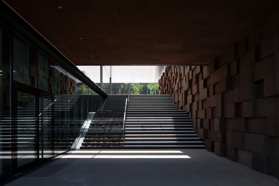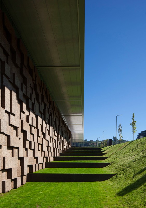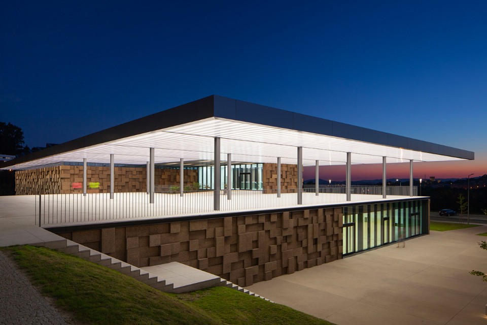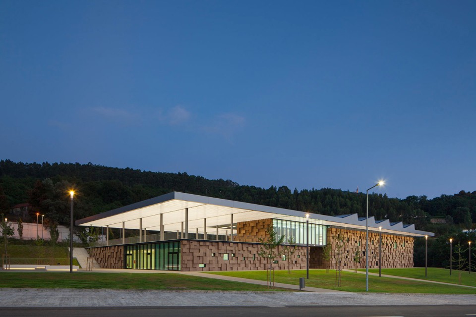 Con una superficie coperta di 3.200 mq, il Gymnastic Training Center di Guimarães, realizzato da Pitagoras Group, si trova al confine est del parco cittadino ed è stato concepito per allenamenti di ginnastica ad alto livello. La struttura si trova tra due strade preesistenti che garantiscono entrambe l’accesso all’edificio. Il centro sportivo è composto da un padiglione, una palestra, spogliatoi, uffici amministrativi e spazi pubblici che danno accesso alle diverse zone. La scelta dei materiali per l’edificio rivela un intento pedagogico. È attenta all’ambiente e all’efficienza energetica, cercando un chiaro equilibrio tra tecnologia architettura. La facciata di sughero scuro mostra le intenzioni dell’architetto, essendo allo stesso tempo fortemente caratterizzante e sostenibile. L’edificio dialoga con i riferimenti dell’ambiente circostante e utilizza la sua presenza volumetrica per dare ricchezza ai sentieri del parco. Non solo crea una piazza d’ingresso e collega I due livelli dell’edificio, ma consente anche la contemplazione del parco e della collina orientale della città.