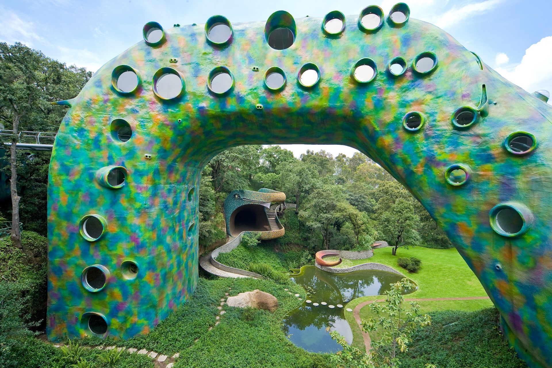 Edifici-giardino, fatti di sensuali percorsi, colori accesi e la forza degli elementi naturali. Insegnamento profondo e attuale, che esprime l’importanza per il rispetto dei sistemi organici e la necessità d’intervenire con prudenza ed umiltà. Il maestro messicano punta l’attenzione, proprio come faceva Gaudí, sugli equilibri organici, sulla morfologia e sulla resistenza delle forme topografiche: la straordinaria intelligenza dell’architettura della natura. Fonte: domusweb.it