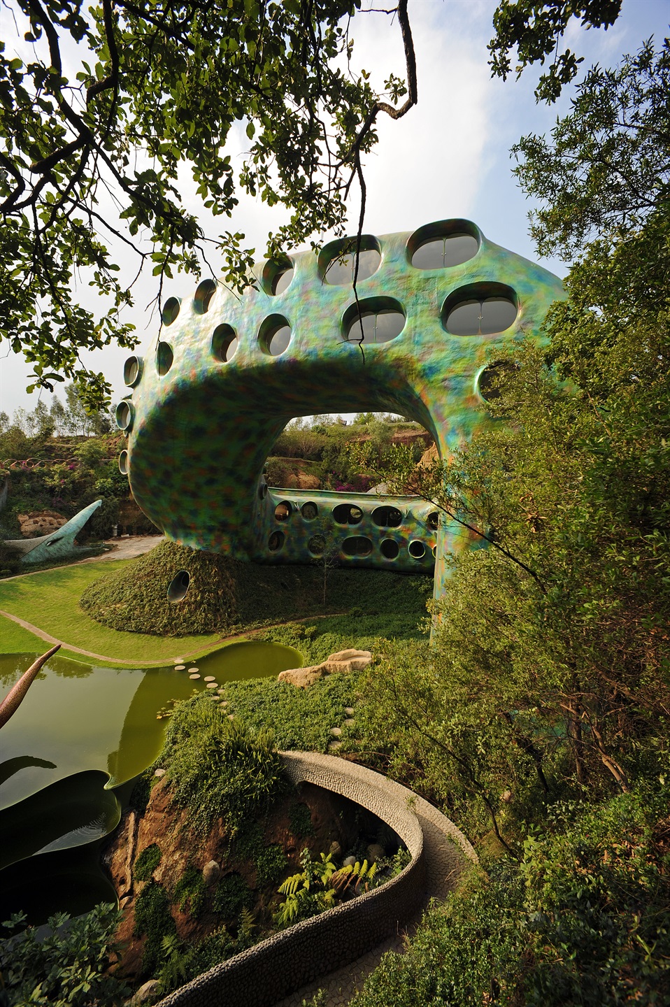 L’architetto Javier Senosiain è noto per dedicarsi ad una progettazione che ha come soggetto il paesaggio e l’ambiente, ai quali vengono aggiunti pochi elementi artificiali, ben studiati, creando un unicum con la natura.