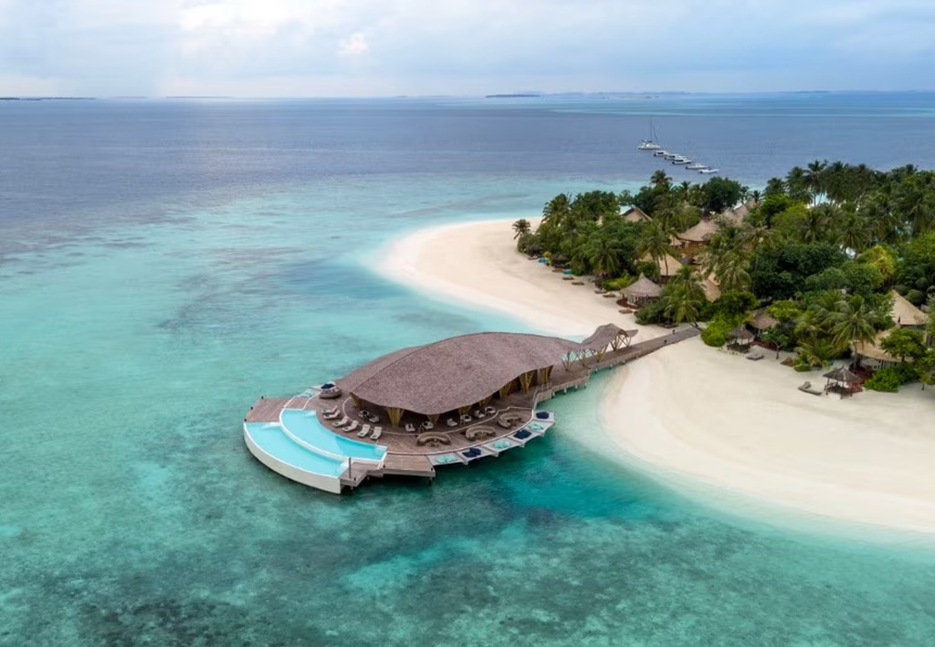 La struttura, firmata dallo studio olandese Atelier Nomadic e posizionata presso il resort Banyan Tree Vabinfaru, utilizza come materiale principale il bambù e sembra galleggiare sulla superficie dell’oceano, pronta a dirigersi al largo. L’architettura, denominata Madi Hiyaa, prende spunto anche dalla lingua dhivehi, dove Madi significa “raggio” e Hiyaa “riparo”, in un rimando alle graziose razze che migrano attraverso l’Oceano Indiano.