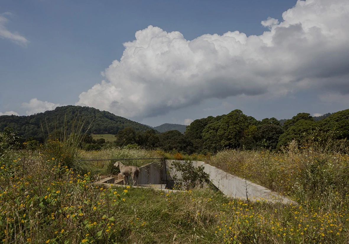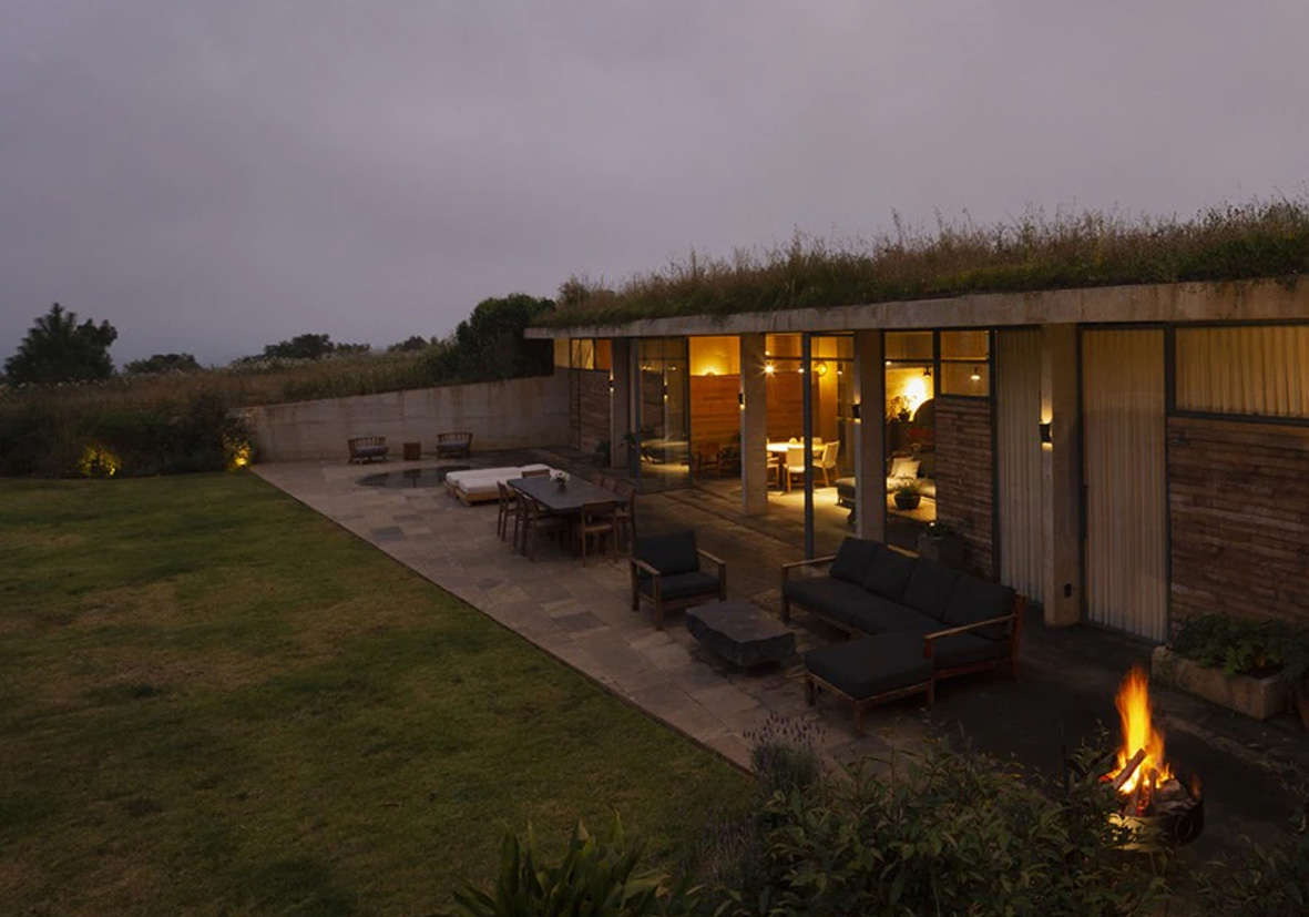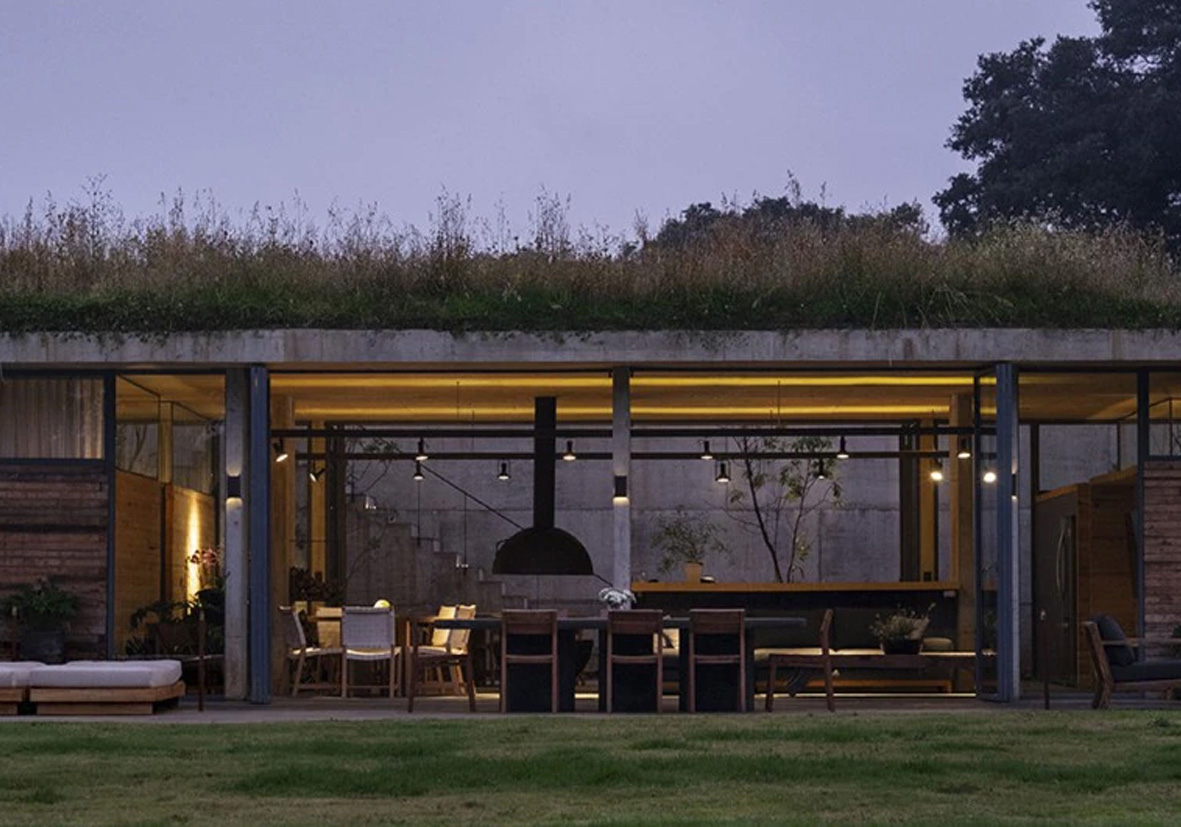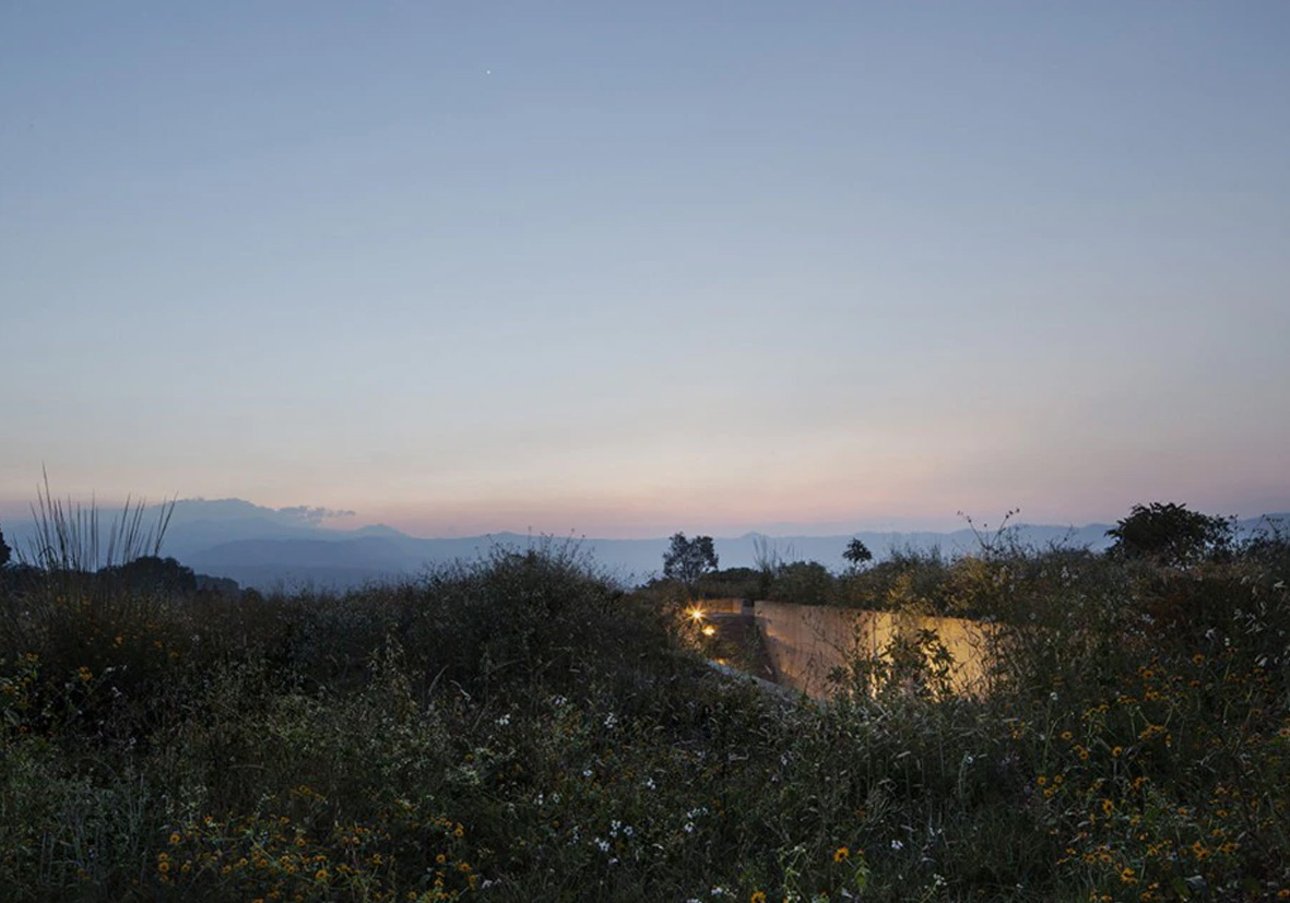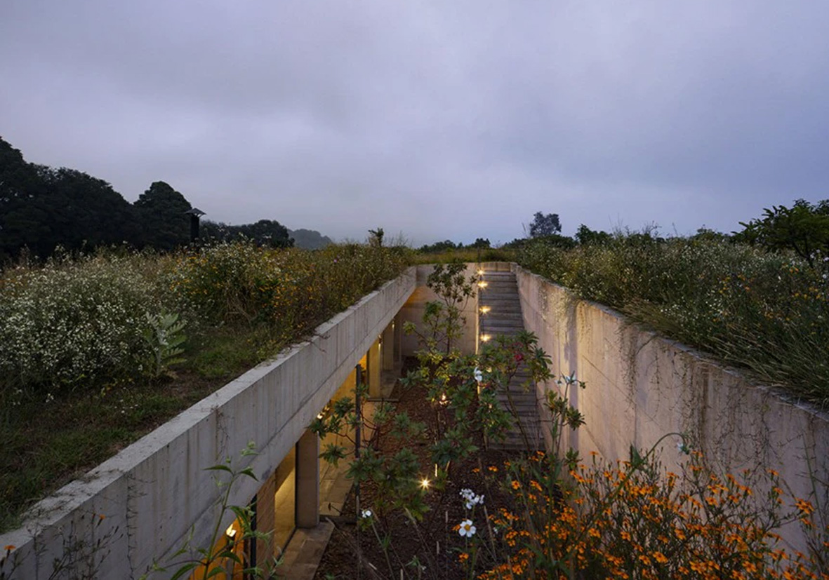 Per rapportarsi nel modo più delicato possibile con il contesto naturale circostante, incorniciato da montagne boscose e tappezzato da campi di avocado, l’architetto Francisco Pardo ha scelto letteralmente di fare scomparire questa casa nel ventre di Pachamama, la Madre Terra delle culture centro-americane che ricopre la costruzione.