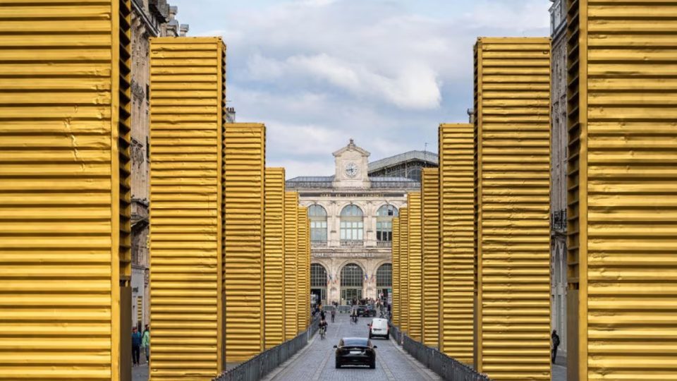 LILLE – FRANCIA GOLDEN MONOLITHS, CONTAINER TRASFORMATI IN TORRI DORATE