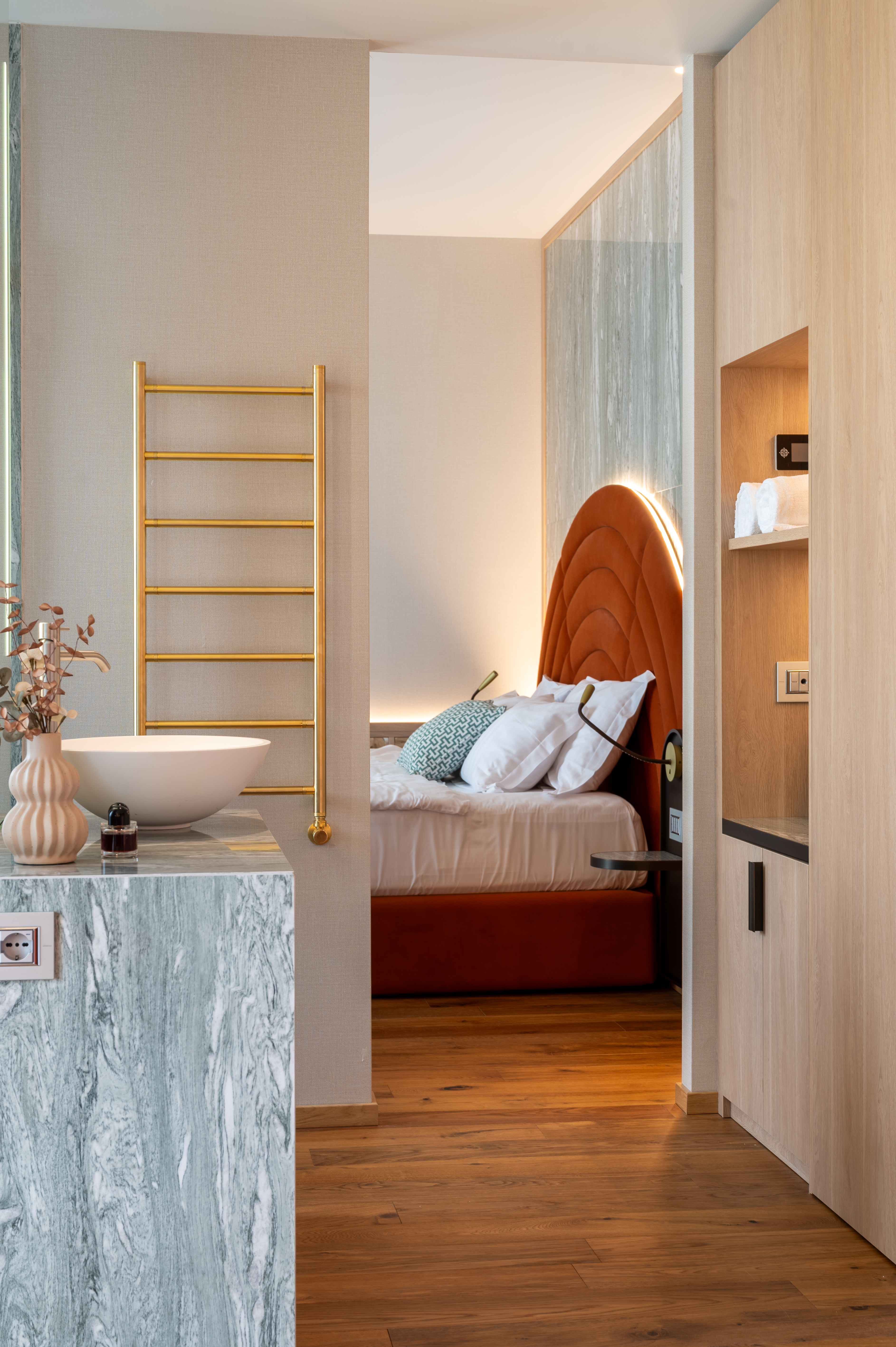 L’ultima suite progettata da Ovre.Design è la Suite Incanto. Elegantissima e con un design tanto delicato quanto seducente delineato da giochi di forme, di tonalità e di luce.