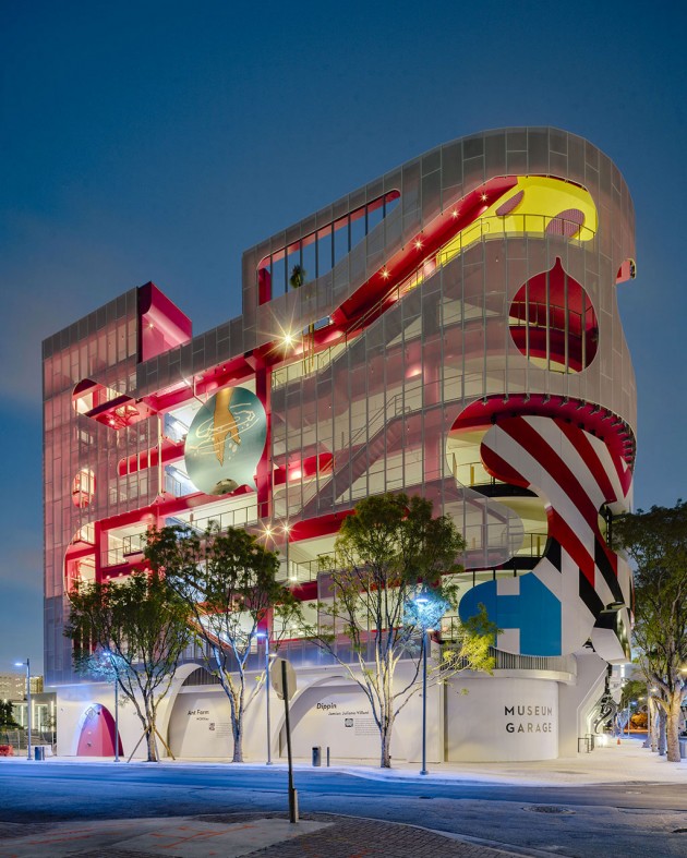 Museum Garage is a multi-level parking area which can hold 800 vehicles, designed by the studio Tim Haahs and is located in the Design District, an area that in the past included warehouses and workshops mainly; from the beginning of the year two thousand it has been gradually transformed into a commercial pole for fashion and furniture, mainly thanks to the incentive by Craig Robins, a local developer.