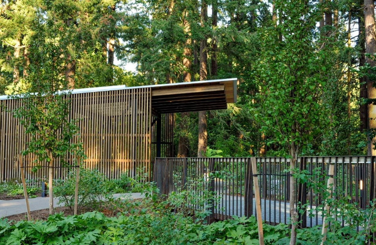 The botanical garden was founded almost a century ago by a local couple, John and Lilla Leach, who once lived in the estate. Now, after years of work, the area finally opens to the public with a pavilion for events, designed in collaboration with Olson Kundig Architects, and an aerial walkway through the trees.