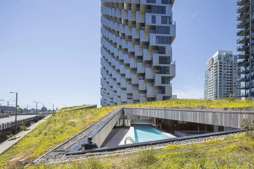 Vancouver House emerge in modo sottile dal terreno, espandendosi man mano che sale, come un genio che esce dalla lampada. Quello che sembra un gesto surreale è in realtà un’architettura altamente reattiva, modellata dal suo ambiente.